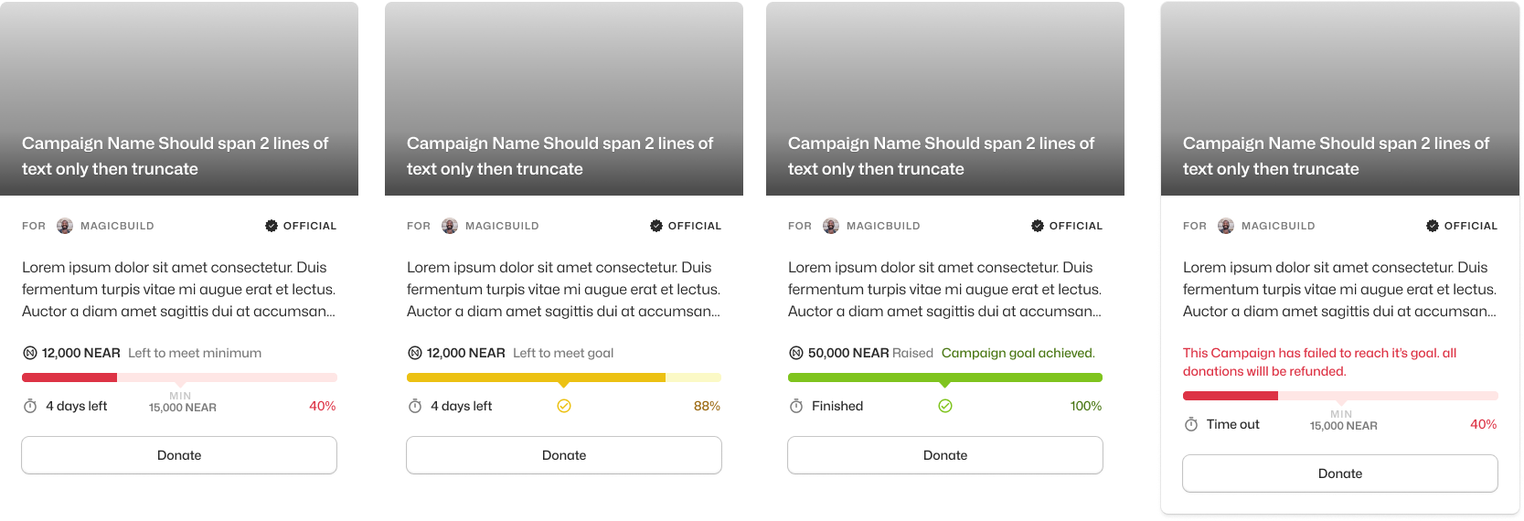 - If yellow it means minimum target has been satisfied and now all donations will pass through throuhg project and distributed to project