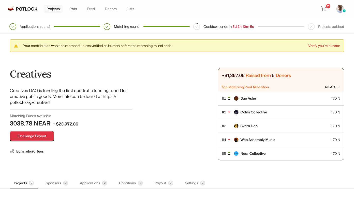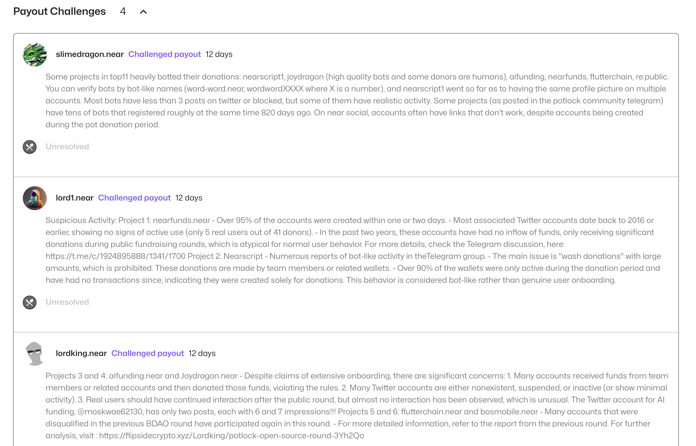 After the cooldown period is done and all challenges have been addressed a chef can either update results or initiate payouts. A chef can flag particular donors
