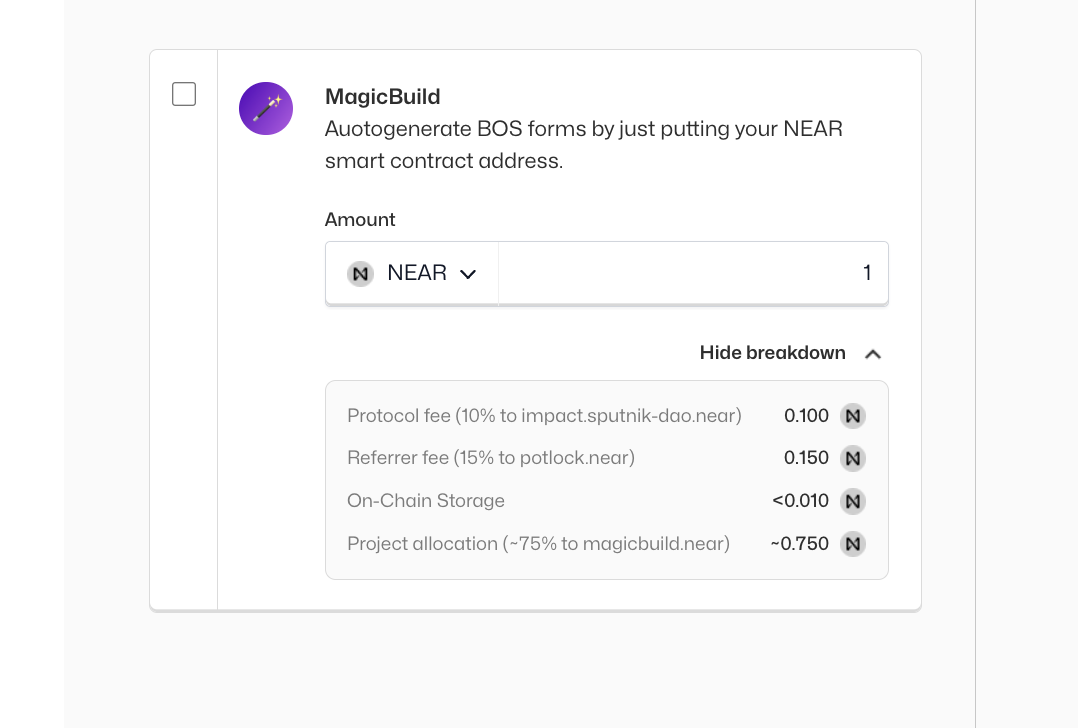 Or if you are into tinkering and not logged in you can simply https://near.social/potlock.near/widget/Index?tab=project&projectId=magicbuild.near&referrerId=potlock.near replace POTLOCK.near as the referredId in the props to the account of your choice